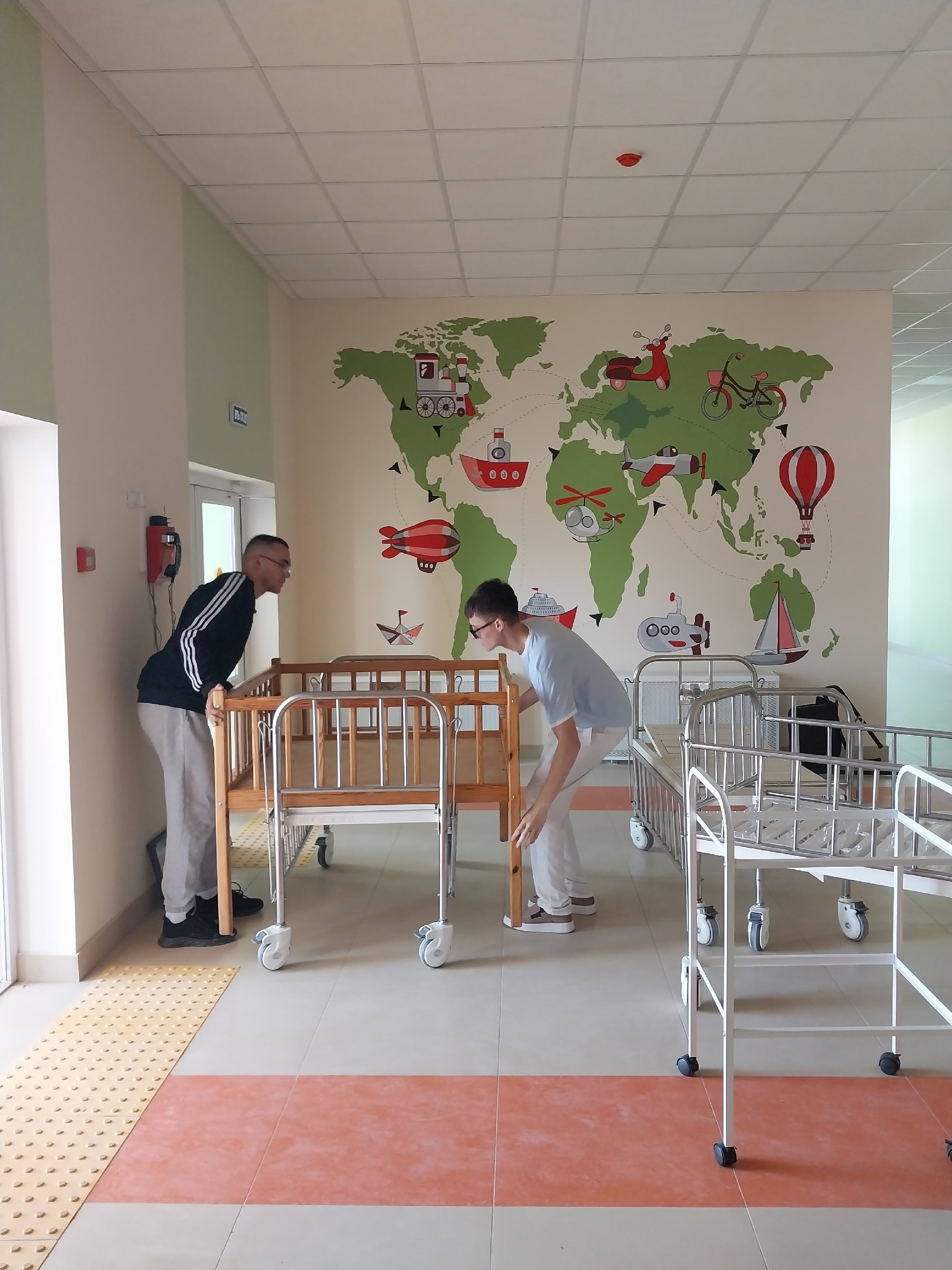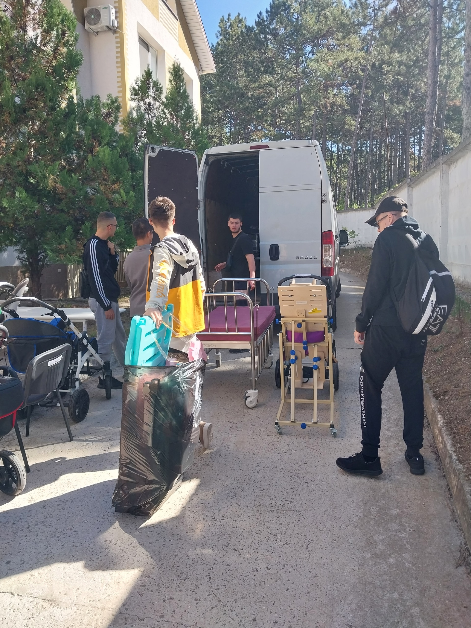 и оказали помощь ГБУЗ РК «Республиканский специализированный дом ребёнка для детей с поражением центральной нервной системы и нарушением психики Елочка» в погрузке — разгрузке: детских кроваток, колясок, пеленальных столиков, мебели для паллиативных деток, вещей, игрушек, уборке мусора, сорняков, амброзии на прилегающей территории и детских игровых площадках, в связи с ремонтом и переездом в новое помещение.