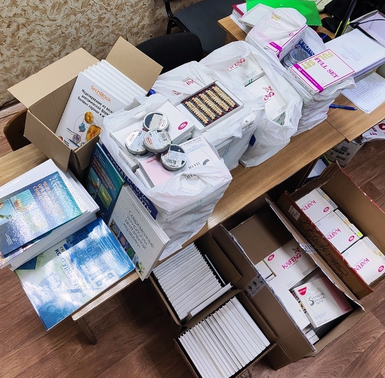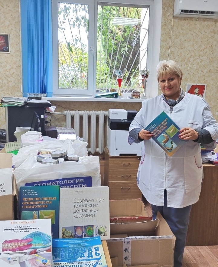 Многие сотрудники зуботехнической лаборатории «Дентал арт» являются выпускниками нашего Медицинского колледжа. Подаренные книги по разным направлениям ортопедической стоматологии помогут обучающимся в освоении теоретических знаний и практических навыков в изготовлении протезов. Выражаем благодарность клинике «Дентал Арт».