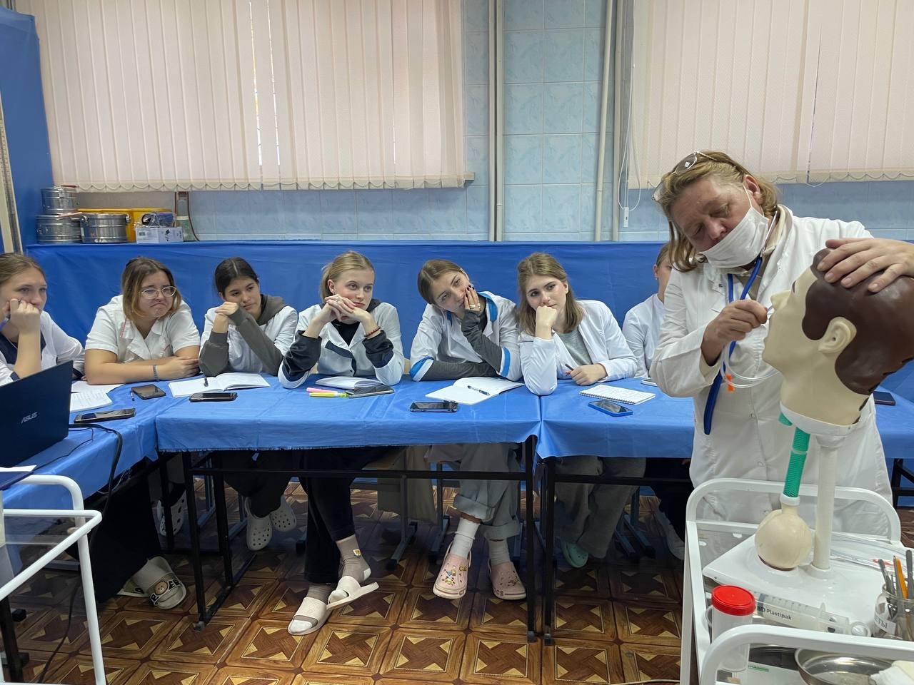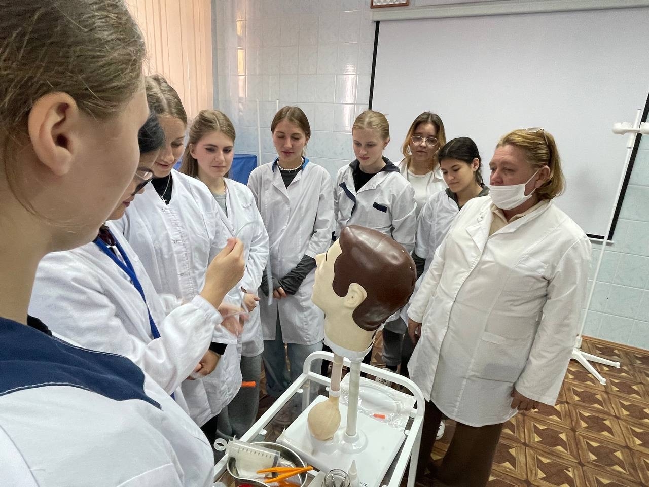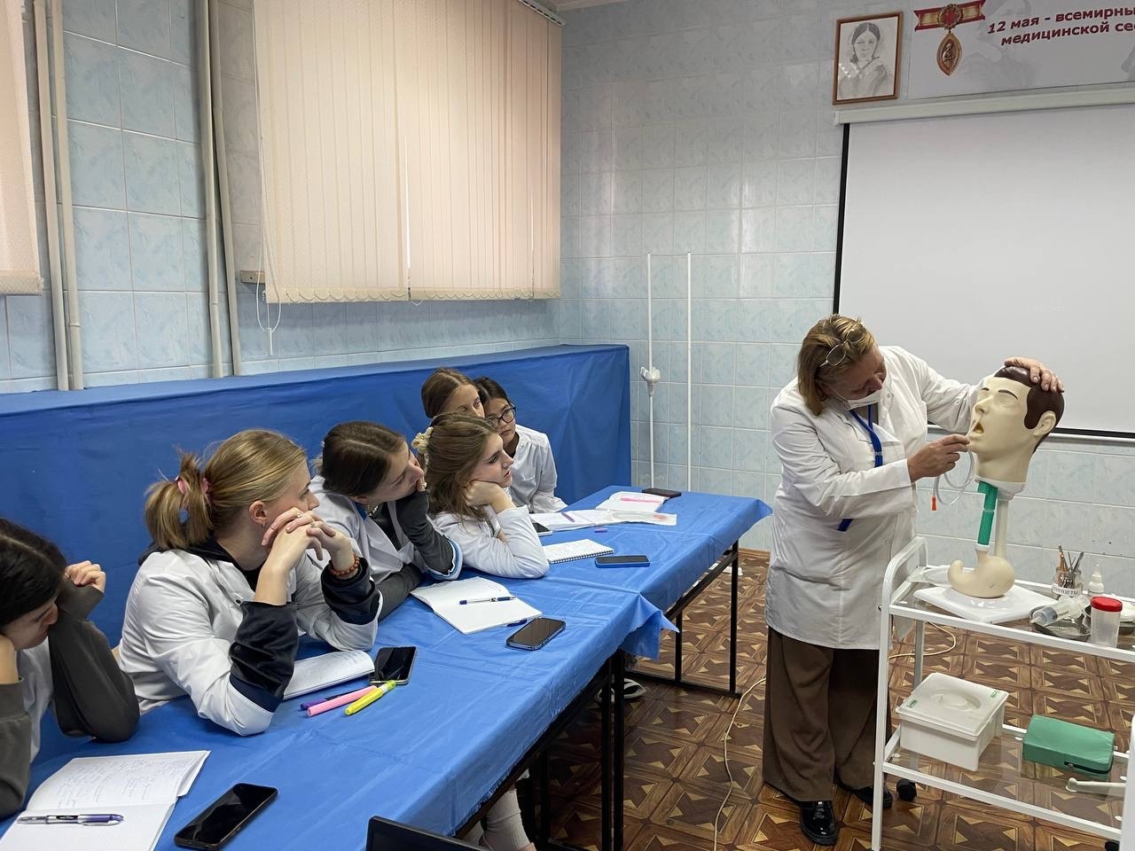 25 октября в Медицинском колледже Ордена Трудового Красного Знамени Медицинского института им. С. И. Георгиевского состоялись практические занятия с обучающимися 11 классов общеобразовательных школ Республики Крым, осваивающими программу профессионального обучения «Младшая сестра милосердия» на тему: «Обеспечение ухода за пациентами при нарушении потребности в самостоятельном питании, питье».