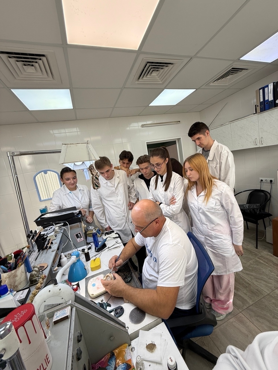 Студенты изучили работу зубных техников, наблюдая за процессом изготовления различных видов зубных протезов. Они увидели, как из отдельных компонентов создаются функциональные и эстетичные конструкции, восстанавливающие жевательную функцию и улучшающие внешний вид пациентов.