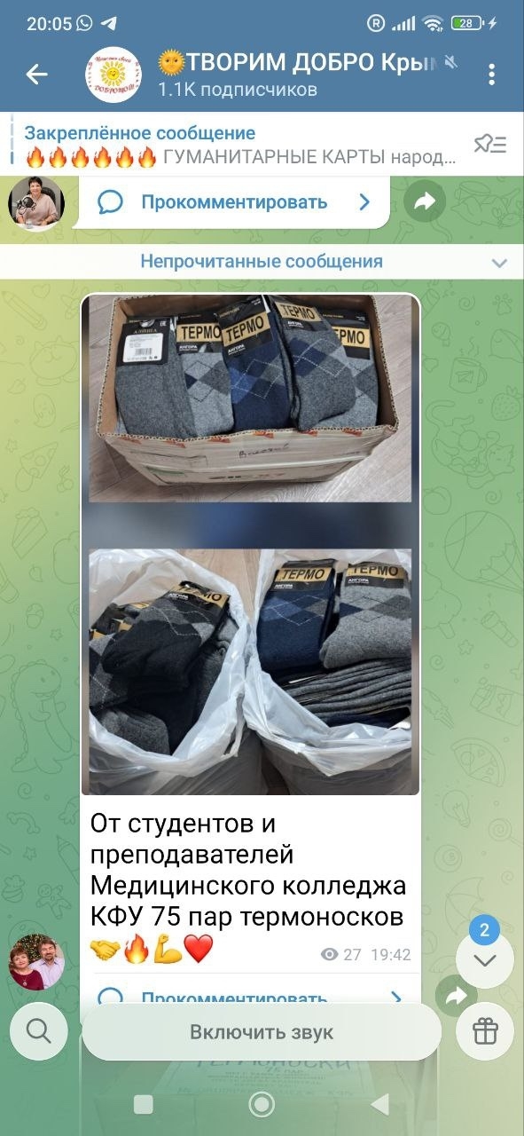 Обучающиеся Медицинского колледжа Ордена Трудового Красного Знамени Медицинского института им. С. И. Георгиевского передали волонтерской группе «Творим добро» очередную партию волонтерской помощи для бойцов специальной военной операции и наших и защитников.