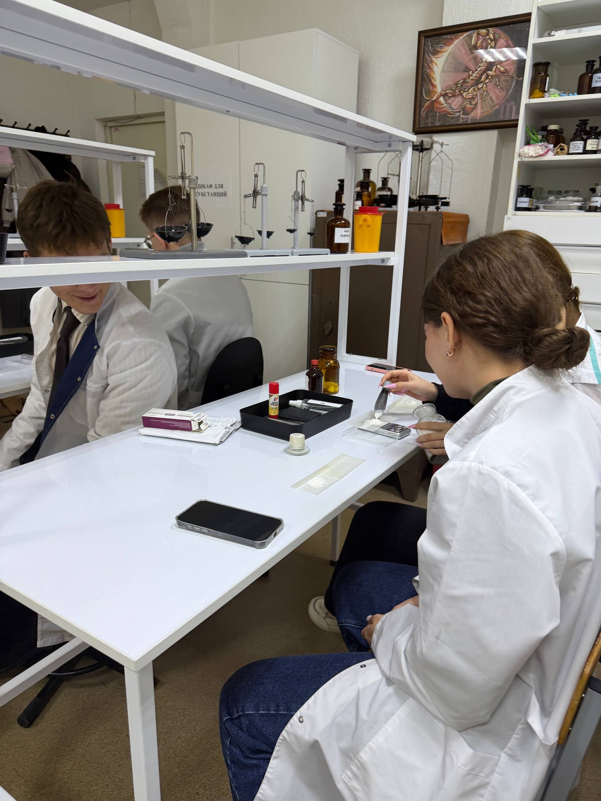 5 и 6 ноября в Медицинском колледже Ордена Трудового Красного Знамени Медицинского института им. С.И.Георгиевского в рамках проекта « Билет в будущее» для учащихся МБОУ «Школа-гимназия №10 им. Э.К. Покровского» г.Симферополь Республики Крым были проведены Профессиональные пробы по специальности 33.02.01 «Фармация».