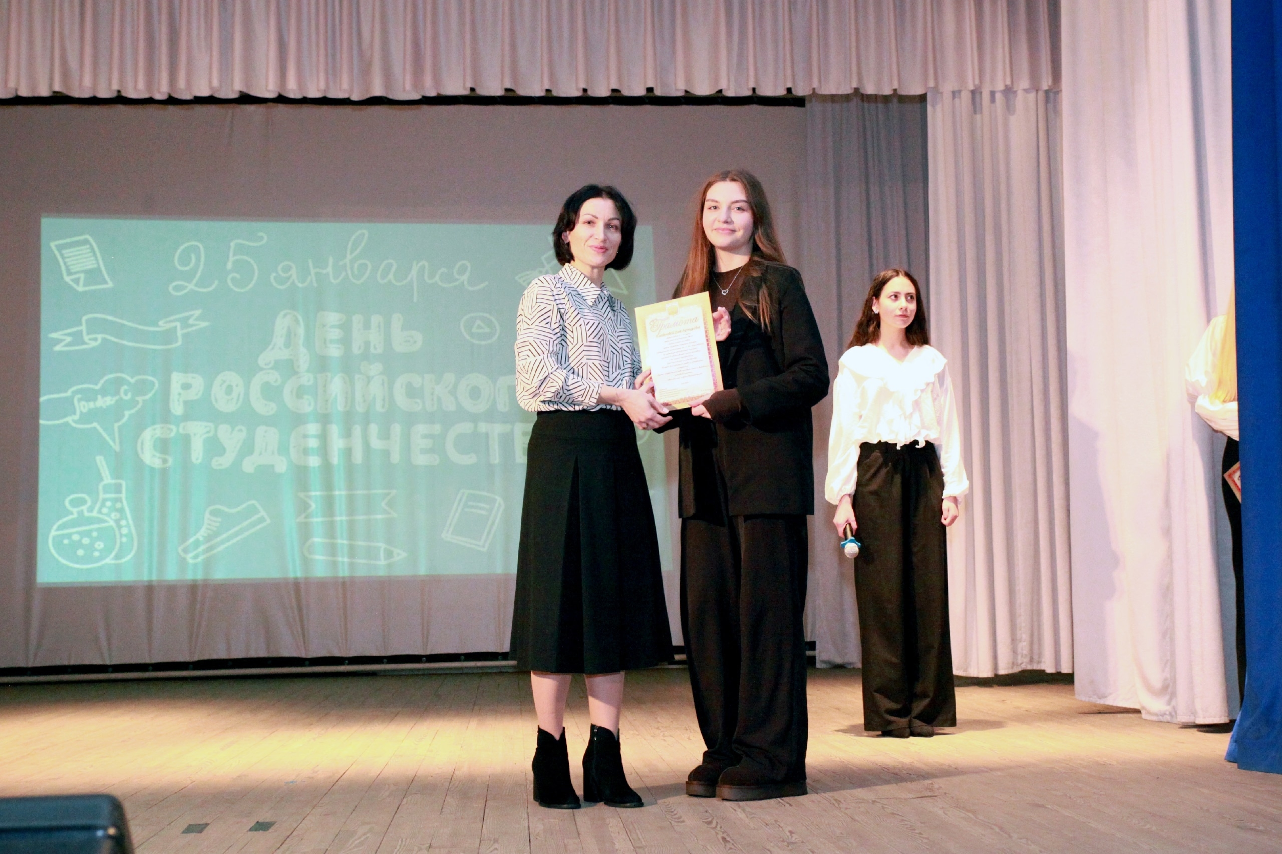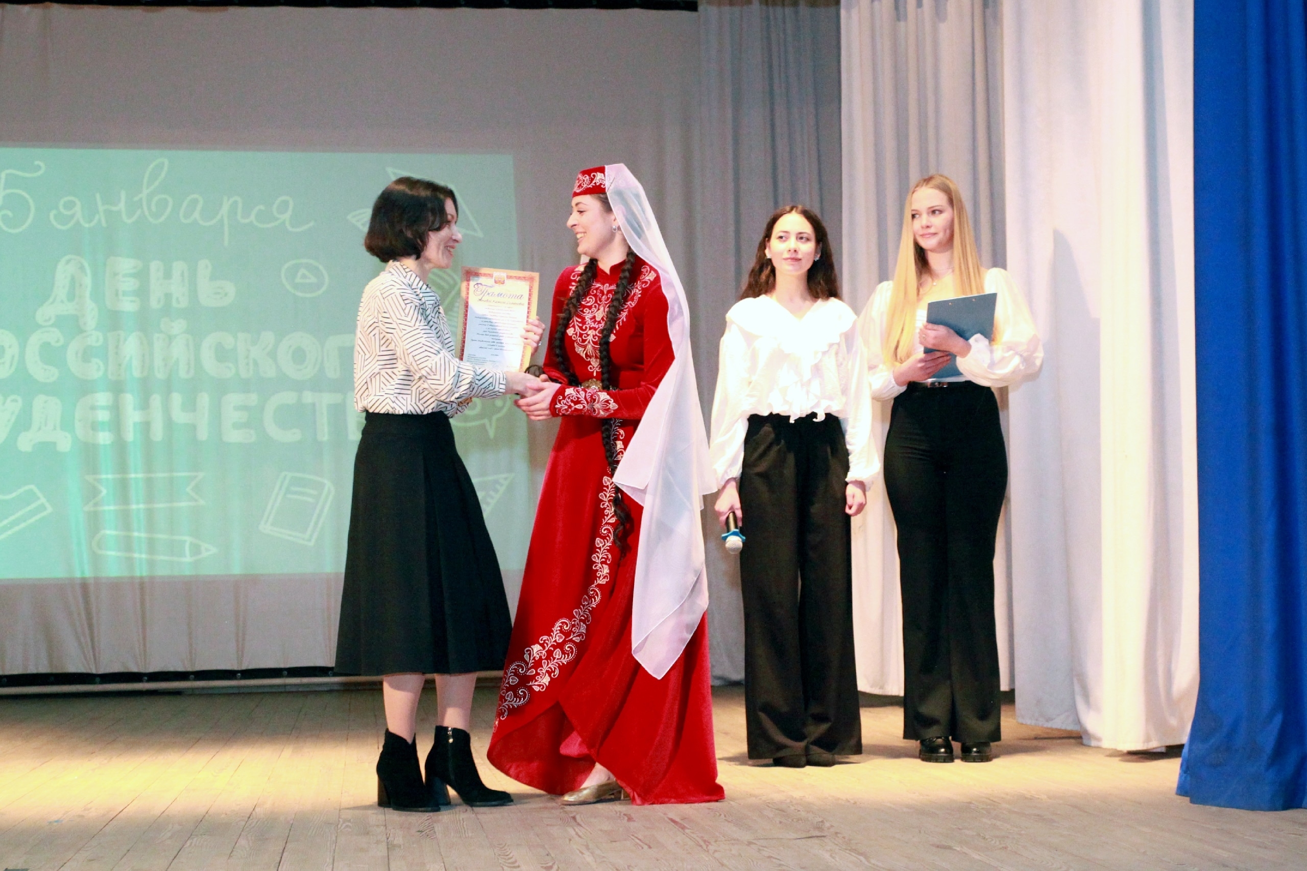 Торжественный концерт, распахнувший свои двери в честь Дня российского студенчества, начался с теплого приветствия Елены Александровны Егоровой, Директора Медицинского колледжа ордена Трудового Красного Знамени Медицинского института им. С. И. Георгиевского. Ее слова, пронизанные искренней гордостью и воодушевлением, стали прекрасным прологом к празднику.
