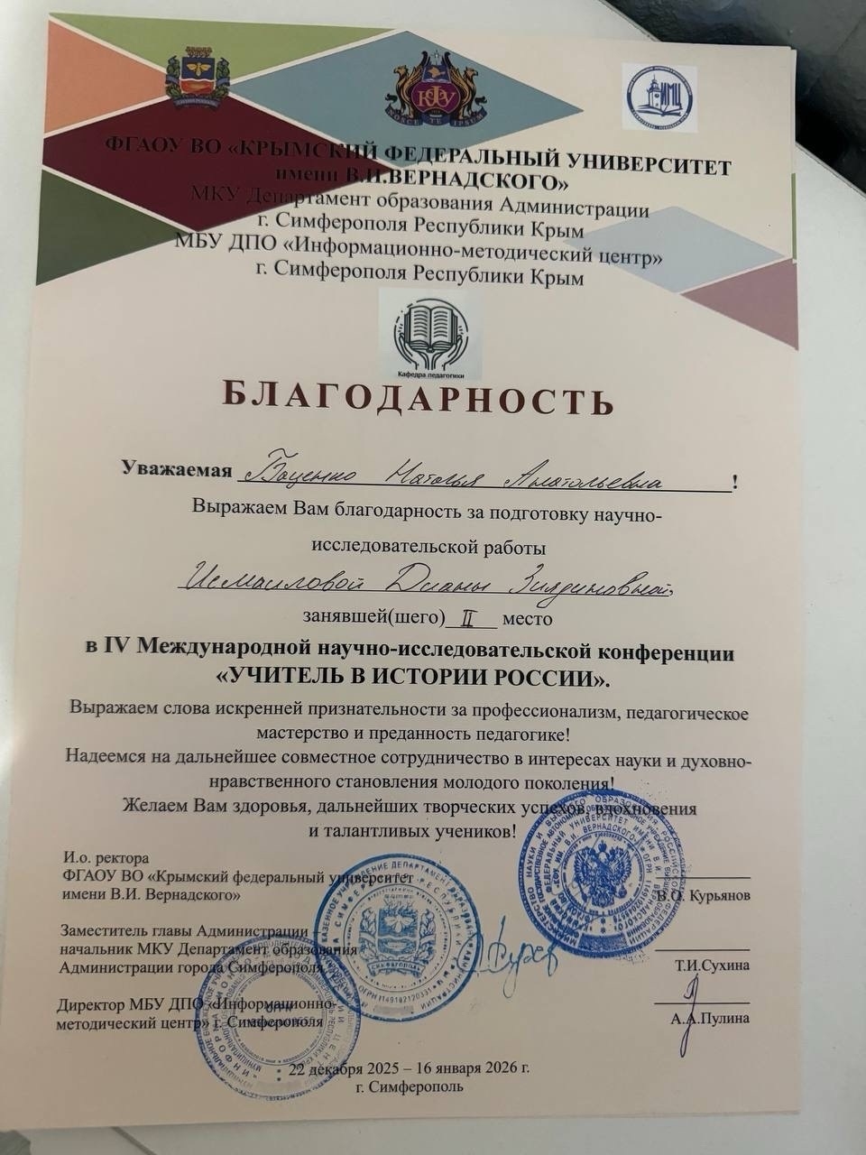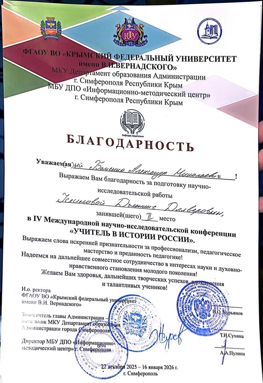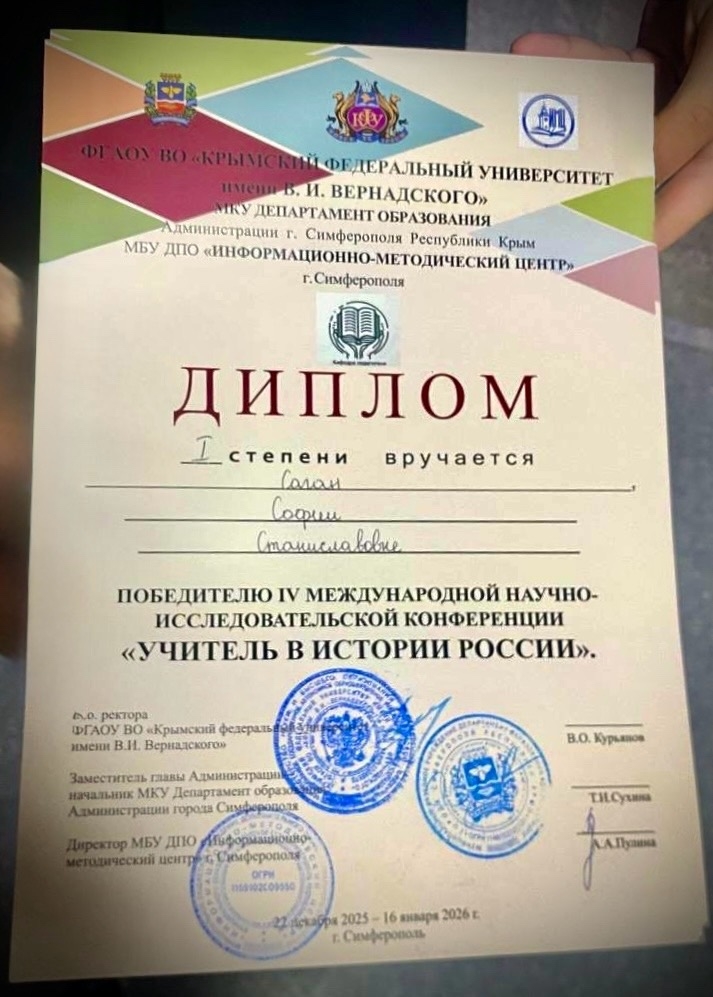 «Формирование системы армянского образования в Крыму: от средних веков до наших дней», Кутра Маргарита Сейяровна, Диплом 3 степени.