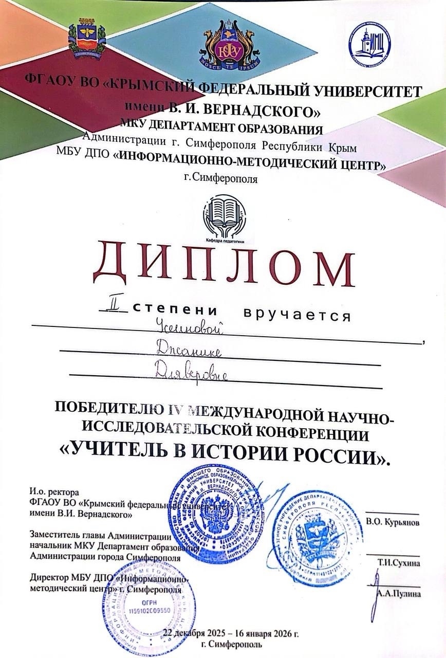 «Скальпель и крест: параллели жизни Святителя Луки», Усеинова Джанике Дляверовна (группа МК-СД/О-24-7), Диплом 2 степени.