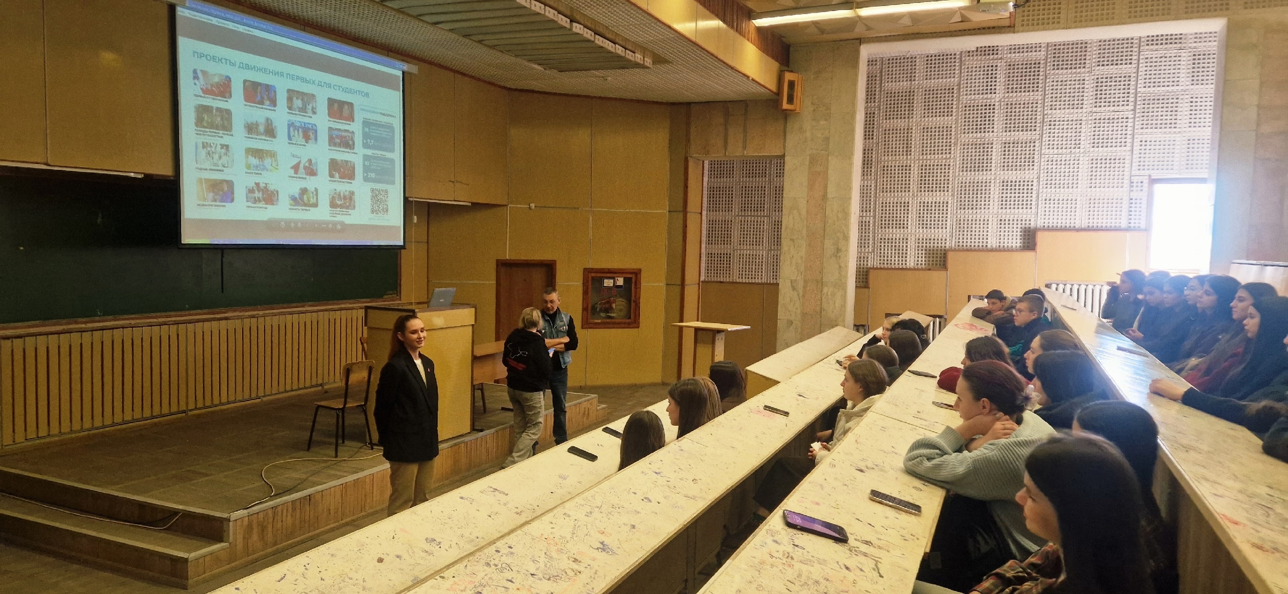 Перед студентами выступили представители представители Местного отделения г. Симферополя и Регионального отделения Движения Первых Республики Крым: главный специалист по организации работы в Симферополе Колосова Наталья Петровна, специалист по организации работы в Симферополе Плоцкий Игорь Егорович, руководитель проектов регионального отделения Движения Первых Республики Крым Буракова Анастасия. Они рассказали ребятам о ценностях и миссии Движения, самых ярких и полезных проектах, а также о том, как каждый может стать частью большой команды и реализовать свои идеи.