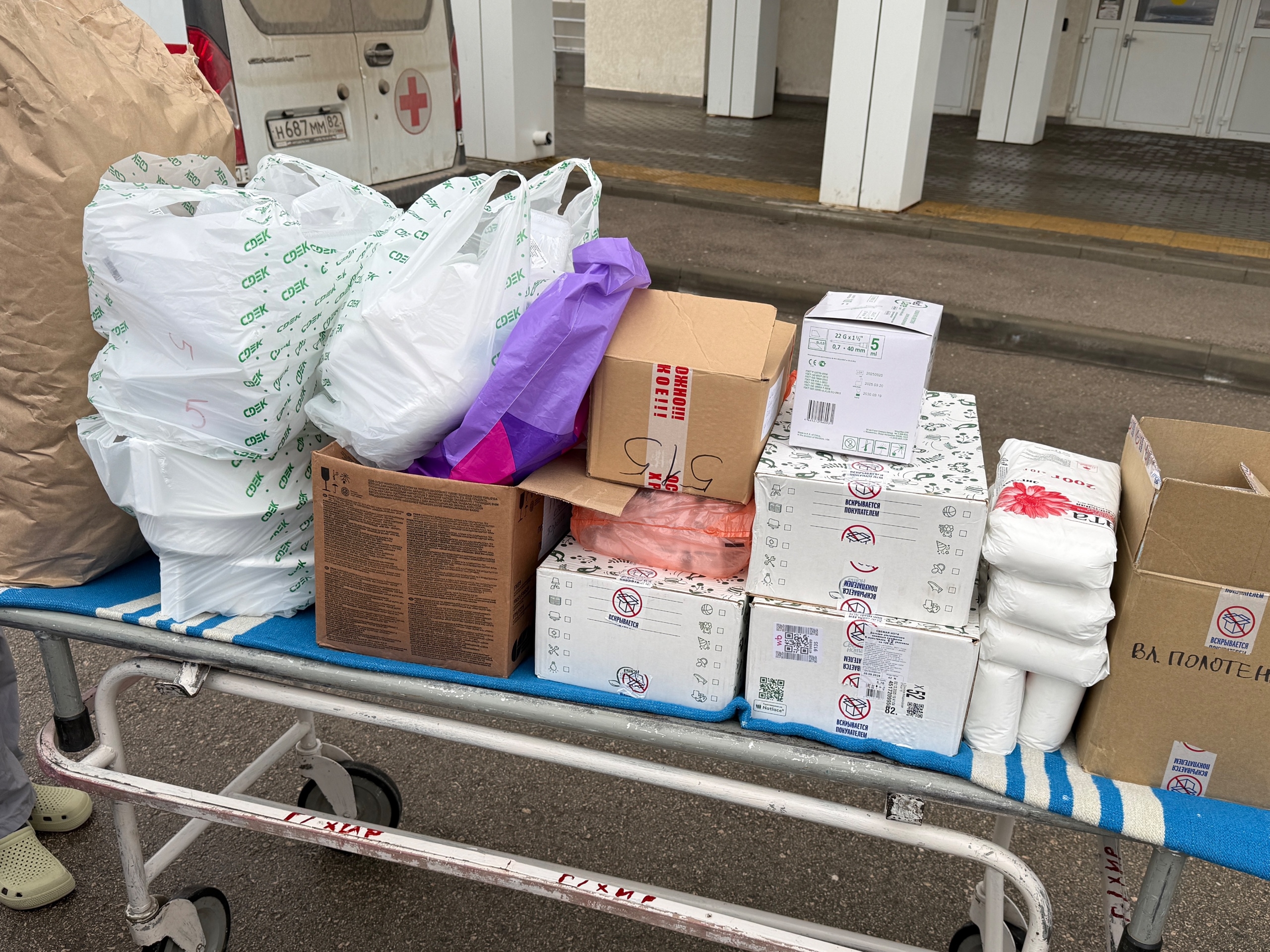 А ещё — всегда нужные в госпиталях расходники — влажные салфетки, постельное белье, медицинские принадлежности и полотенца.