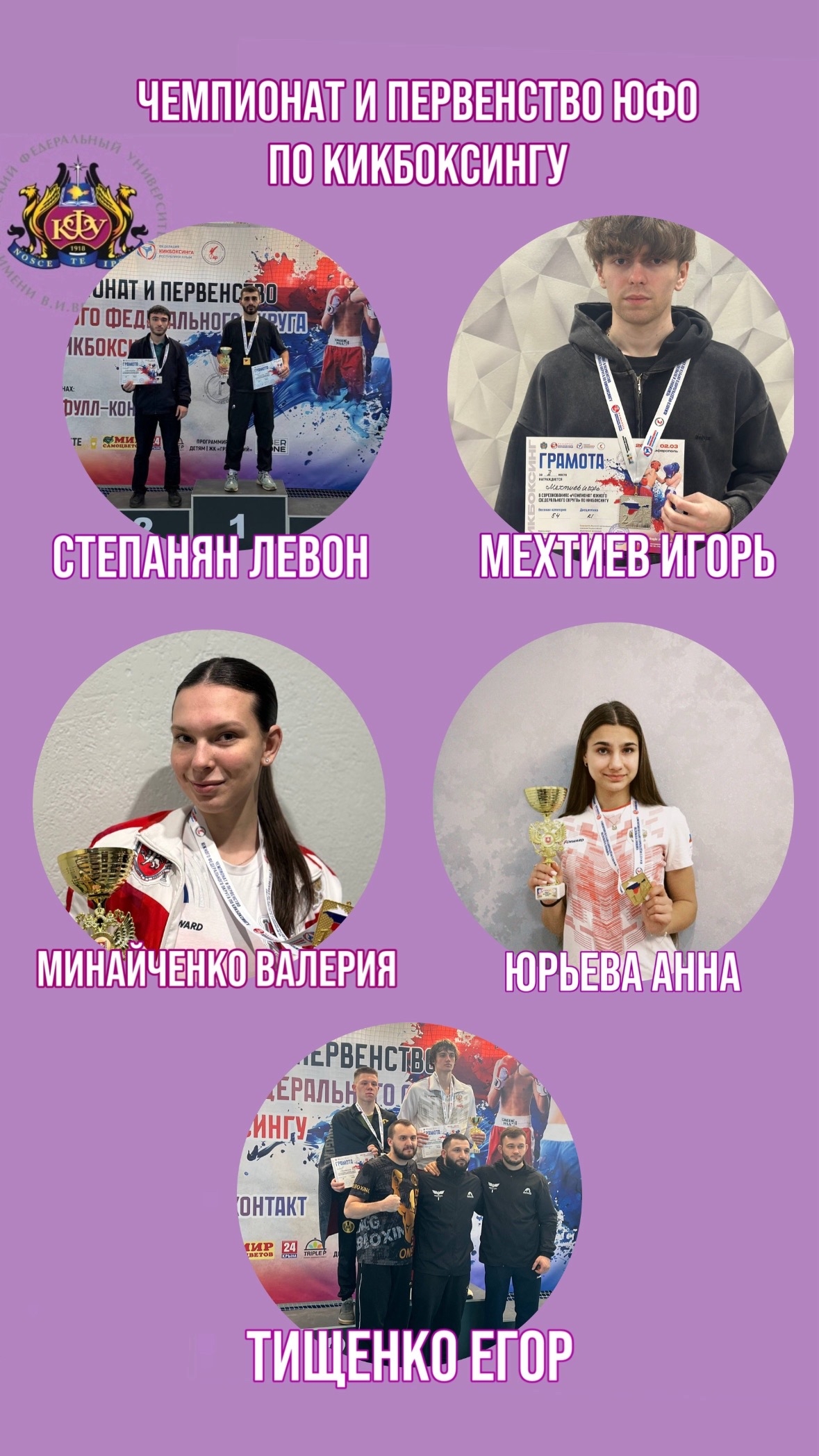 А итог выступления студентов Университета на Чемпионате и Первенстве ЮФО по кикбоксингу просто фантастический: 4 золотые и 1 серебряная медаль!