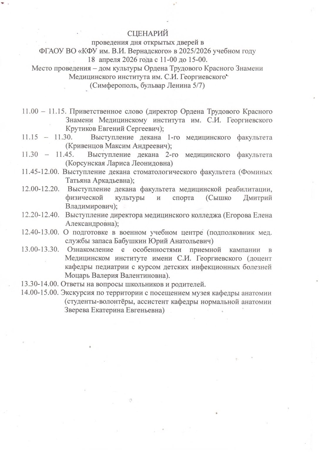 18 апреля 2026 года с 11:00 до 15:00 в Ордена Трудового Красного Знамени Медицинском институте им. С.И. Георгиевского будет проводиться День открытых дверей!