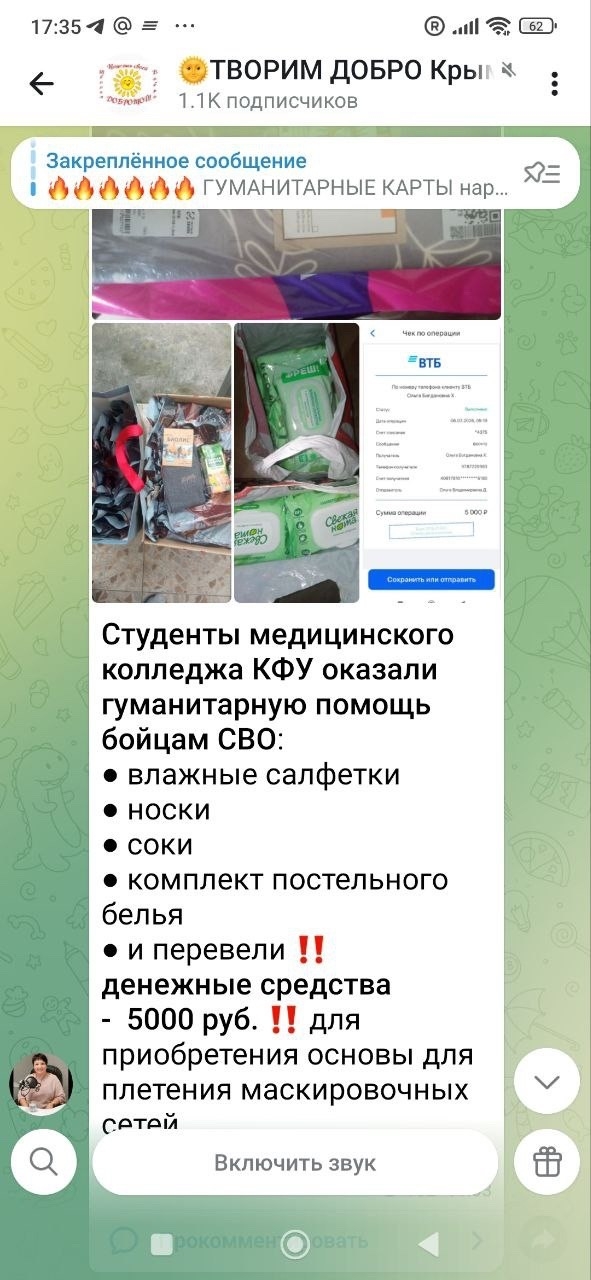Огромная благодарность всем, кто принимает участие в благотворительных акциях и сборах помощи нашим Защитникам, участникам специальной военной операции.